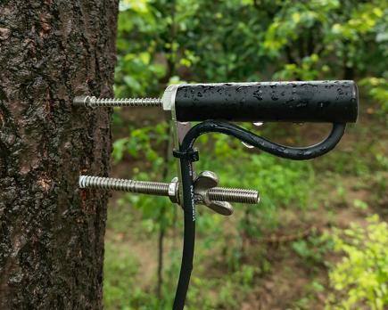选择树干平整处安装传感器,硬质树皮建议预先钻孔。